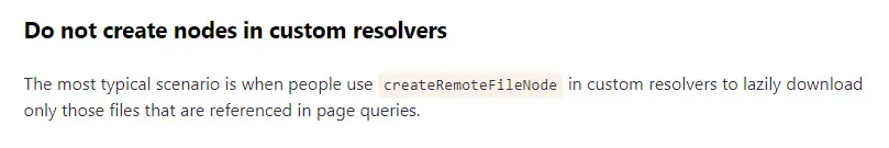 Gatsby v4ではParallel Query Runningが導入されたことでライフサイクルのどこで処理をするかがシビアになり、v3までで許されていたことが色々と非推奨になっています。たとえば、createResolversでcreateRemoteFileNodeを使うようなことは禁じ手となりました。